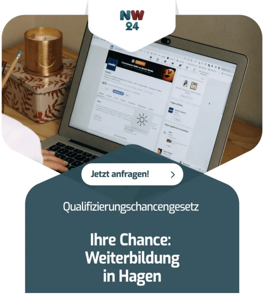 NW24 ist AZAV-zertifiziert, bietet individuelle 1:1-Begleitung, kennt alle relevanten Förderprogramme, erklärt komplexe Themen verständlich und begleitet Sie ganzheitlich vom ersten Kontakt bis zum erfolgreichen Abschluss
