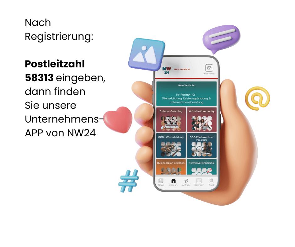 Über die New Work 24 App können Sie uns Nachrichten senden, Termine vereinbaren und jederzeit in Kontakt treten. Mit Push-Benachrichtigungen informieren wir Sie direkt über aktuelle Neuigkeiten, Angebote und wichtige Updates.